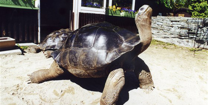 Отмечается, что черепахи нашли друг друга в швейцарском зоопарке и влюбились. Они оба любили нежиться под солнцем, обожали помидоры и к тому же обе с Галапагосских островов. При этом их отношения были самыми продолжительными в истории. Однако в 2012 году черепахи, которые прожили вместе Великую депрессию, две мировых войны и дожила до ХХI века, расстались.