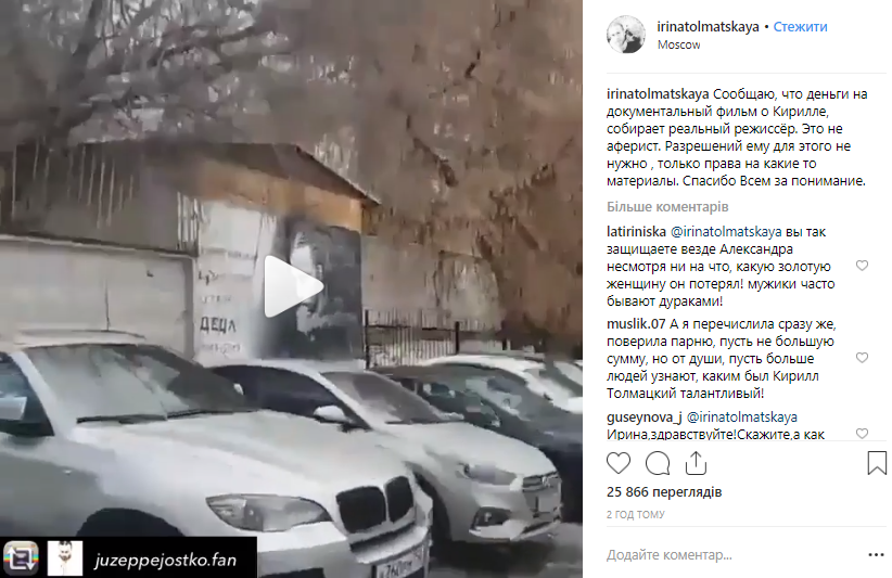 "Это не аферист. Разрешений ему для этого не нужно , только права на какие то материалы. Спасибо Всем за понимание", - написала Ирина Толмацкая.