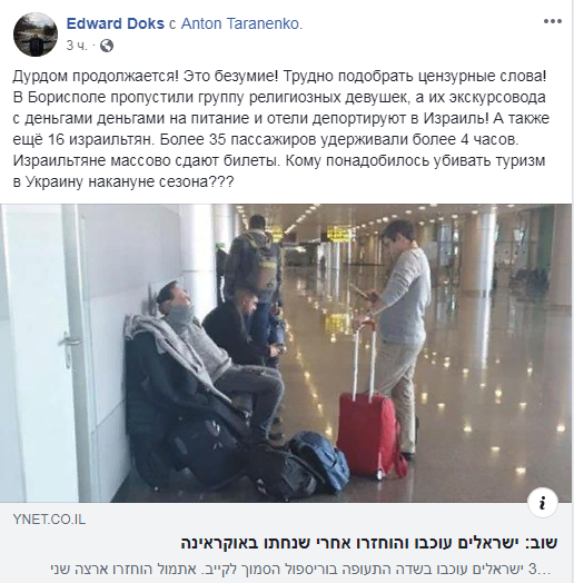 Во вторник, 19 февраля, около 35 израильтян, прибывших в Киев утренним рейсом компании "Эль-Аль" не прошли паспортный контроль в аэропорту Борисполь. Об этом говорится на Фейсбук-странице пользователя Edward Doks.