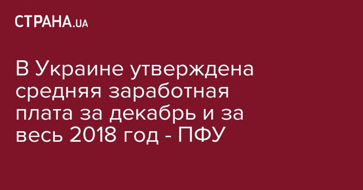 В Украине утверждена средняя заработная плата за декабрь и за весь 2018 год - ПФУ