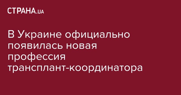 В государственном Классификаторе профессий Украины по коду 2229.2 появится новая профессия - трансплант-координатор, которую утвердило Минэкономразвития, пишет Лига.