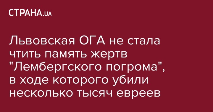 Во Львовской области в 2019 году не будут проводить официальные мероприятия, чтобы почтить память жертв "Лембергского погрома" 30 июня - 2 июля 1941 года, когда во Львове были уничтожены несколько тысяч евреев. Об этом со ссылкой на информацию Львовской ОГА пишут "Украинские Новости".