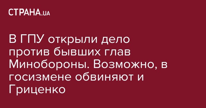 Генеральная прокуратура Украины открыла уголовное производство по факту государственной измены бывших руководителей Минобороны, действия которых привели к снижению обороноспособности страны. Об этом со ссылкой на нардепа от БПП Ивана Винника пишет "Интерфакс"