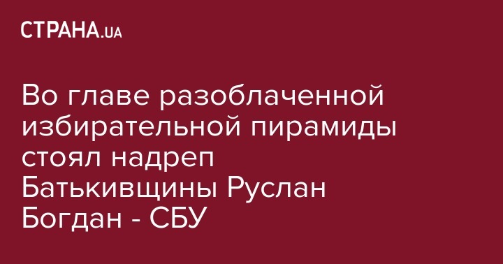 Согласно данным Службы безопасности Украины, схему по созданию так называемых избирательных пирамид на предстоящих выборах, в рамках расследования которой правоохранители провели более 30 обысков 21 февраля, финансировал надреп от "Батькивщины" Руслан Богдан. Об этом свидетельствует информация, опубликованная на сайте СБУ.