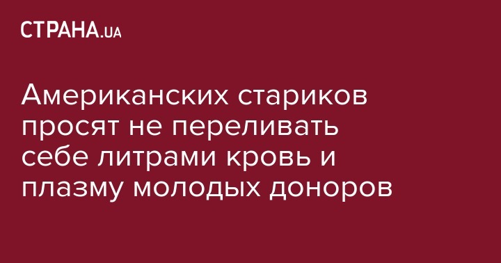 Жителям Соединенных Штатов медики тщетно пытаются объяснить, что популярная в последние годы практика переливания возрастным пациентам молодой крови, которая активно рекламируется как средство омоложения организма и борьбы с болезнями, обычно развивающимися в преклонном возрасте.