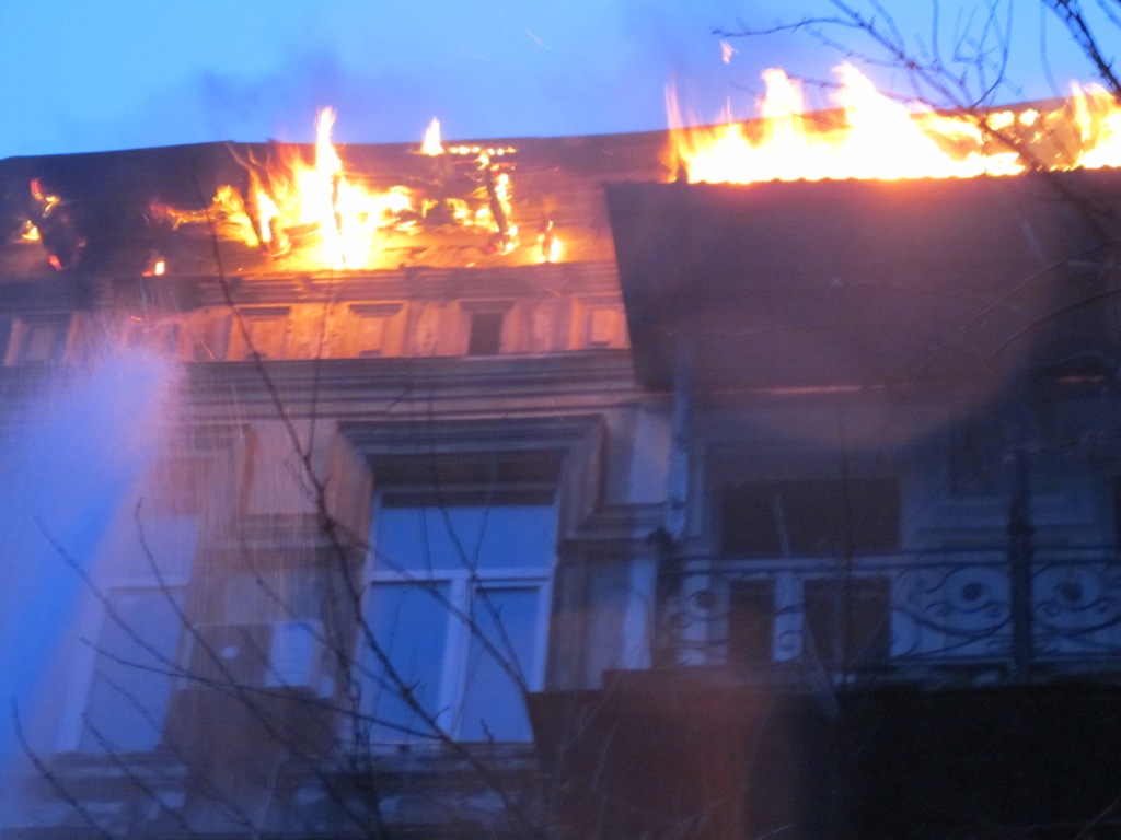 "22 февраля в 05:19 в Службу спасения "101" поступило сообщение о пожаре в четырехэтажном жилом доме в г. Одесса по улице Ришельевской, 11. В 05:25 на место вызова прибыли первые пожарно-спасательные подразделения и установили, что горит кровля жилого дома на площади 800 кв. м и существует угроза ее разрушения. Спасатели сразу приступили к эвакуации жильцов дома и тушению пожара. Пожарные эвакуировали 40 человек", - рассказали спасатели.