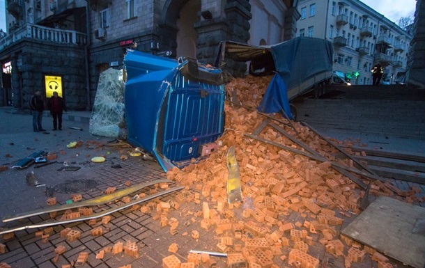 Правоохранители рассказали подробности ДТП, в результате которого груженная кирпичами фура перевернулась у здания мэрии в центре Киева. Об этом сообщает пресс-служба столичной полиции.