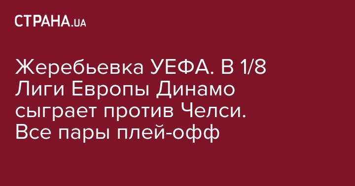 Жеребьевка УЕФА. В 1/8 Лиги Европы Динамо сыграет против Челси. Все пары плей-офф