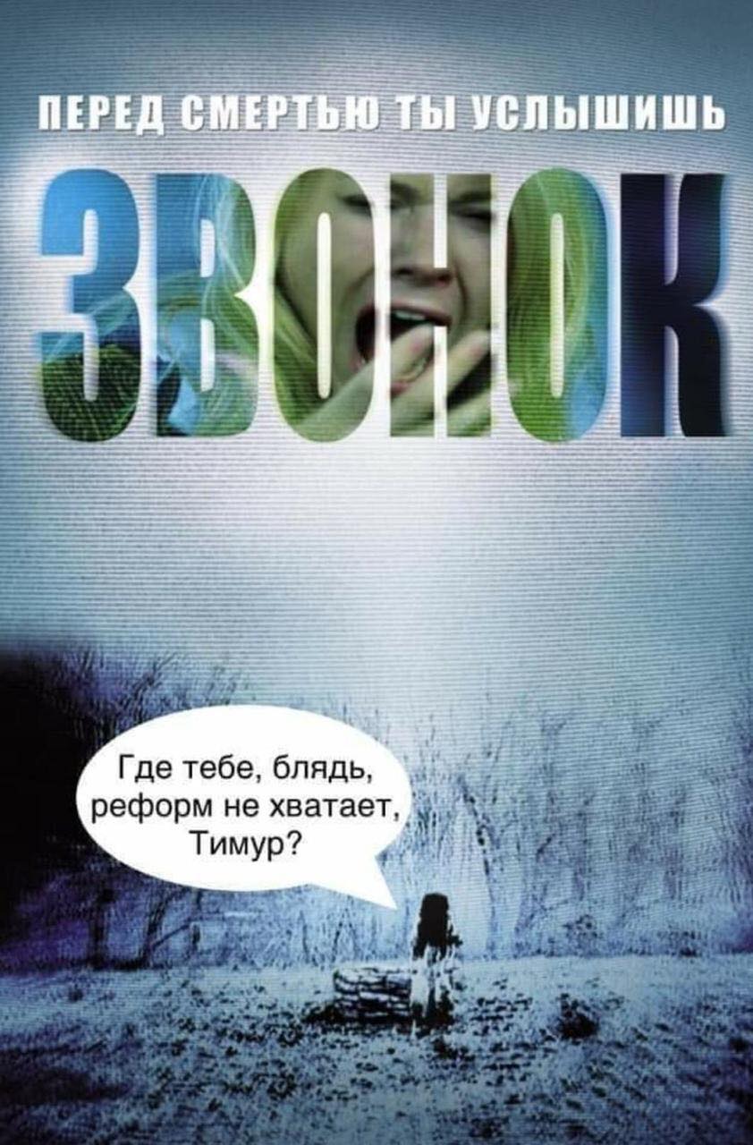 В интернете сразу начали появляться мемы. Основной темой для шуток стала фраза, сказанная президентом: "Где тебе @лядь еще, Тимур, реформ не хватает?" Ее тут же растащили как подпись к разным картинкам.