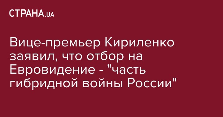 Вице-премьер-министр Украины Вячеслав Кириленко заявил, что Национальный отбор на Евровидение 2019 стал "частью гибридной войны России против Украины". Об этом он написал на своей странице в Twitter.