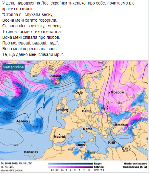 Напомним, 25 февраля в Украину придет незначительное потепление: с юго-запада будет давить антициклон, а с севера – циклон. Украина окажется между этими мощными атмосферными гигантами.