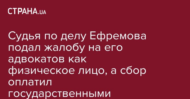 Судья по делу Ефремова подал жалобу на его адвокатов как физическое лицо, а сбор оплатил государственными деньгами
