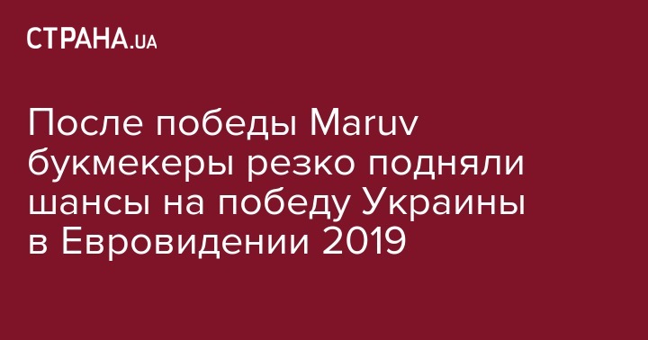 Украина поднялась сразу на 10 мест в списке возможных победителей Евровидения 2019. После победы Maruv в общеукраинском отборе она переместилась с 14 на 4 позицию в букмекерском рейтинге стран-участниц. Об этом сообщает пресс-служба международного конкурса.