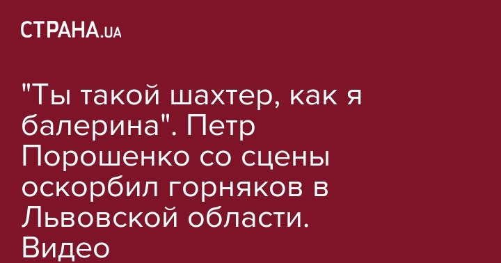 После этого из толпы слышится недовольный выкрик. На что Порошенко в микрофон произносит: "Да мы знаем. Ты такой шахтер, как я балерина!".