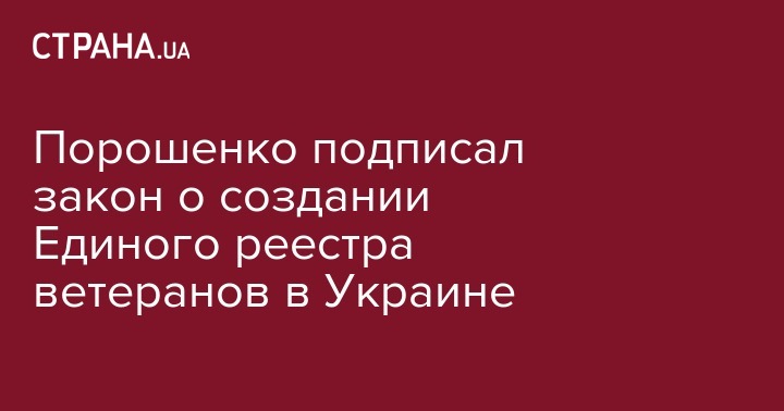 Во вторник, 26 февраля, президент Петр Порошенко подписал закон о создании Единого госреестра ветеранов войны, принятый Верховной Радой на заседании 7 февраля. Об этом свидетельствует информация в карточке законопроекта № 9508, опубликованной на сайте парламента.