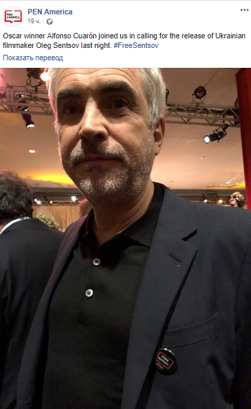 Центр также разместил фото Куарона, на пиджаке которого прикреплен значок с надписью FreeSentsov.