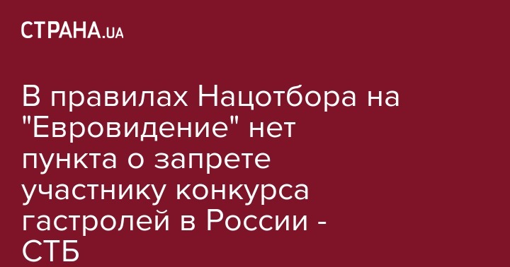 В правилах Нацотбора на "Евровидение" нет пункта о запрете участнику конкурса гастролей в России - СТБ