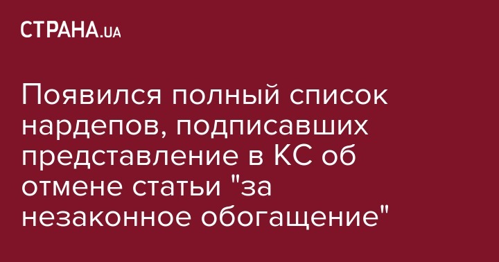 Портал LIGA обнародовал полный список народных депутатов, которые еще в 2017 году подписали представление, на основании которого Конституционный суд признал неконституционной и отменил статью 368-2 УК, предусматривающую наказание за незаконное обогащение.