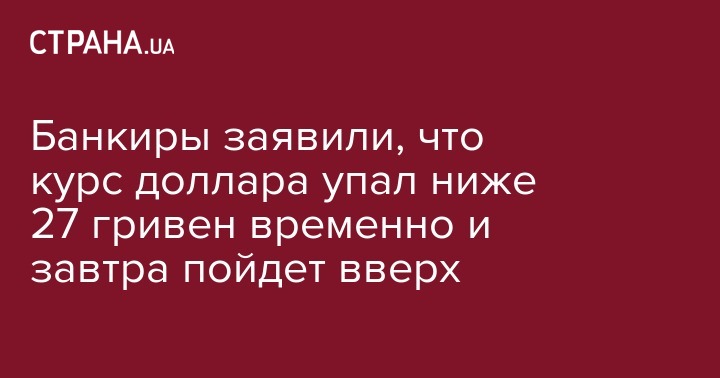 Банкиры заявили, что курс доллара упал ниже 27 гривен временно и завтра пойдет вверх