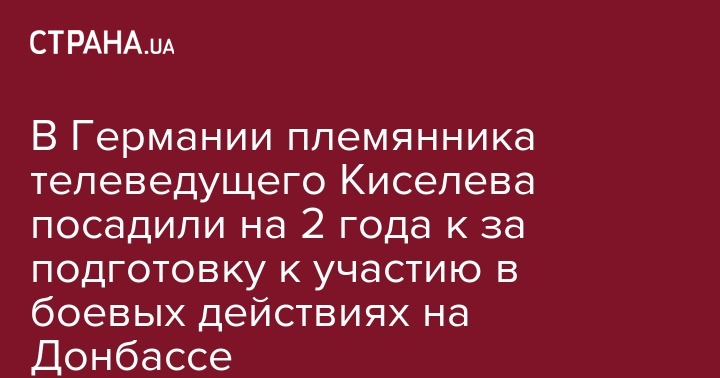 Суд в Мюнхене приговорил Сергея Киселева, племянника телеведущего Дмитрия Киселева к двум годам и трем месяцам лишения свободы по делу о подготовке к участию в боевых действиях на востоке Украины. Об этом 28 февраля сообщает RTVI