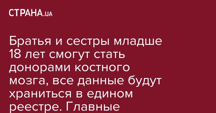 Братья и сестры младше 18 лет смогут стать донорами костного мозга, все данные будут храниться в едином реестре. Главные изменения в трансплантологии Украины