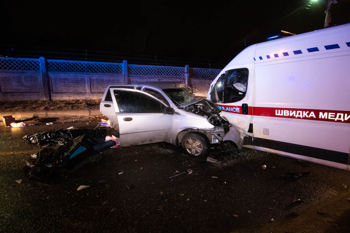 Поздним вечером в четверг, 28 февраля, в Киеве на выезде с моста Метро столкнулись ZAZ Vido и карета скорой помощи Peugeot Boxer. Авария произошла около 23:30 на Броварском проспекте.