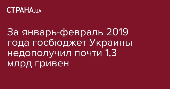 За январь-февраль 2019 года госбюджет Украины недополучил почти 1,3 млрд гривен