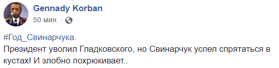 "Президент уволил Гладковского, но Свинарчук успел спрятаться в кустах! И злобно похрюкивает".