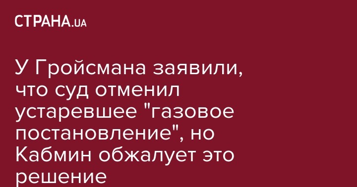 Окружной админсуд отменил постановление Кабмина с ценами на газ для населения, которое ранее уже утратило силу, но Кабмин все равно обжалует это решение. Об этом написал пресс-секретарь премьер-министра Украины Василий Рябчук на своей странице в Facebook.