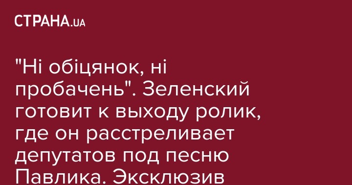 "Ні обіцянок, ні пробачень". Зеленский готовит к выходу ролик, где он расстреливает депутатов под песню Павлика. Эксклюзив