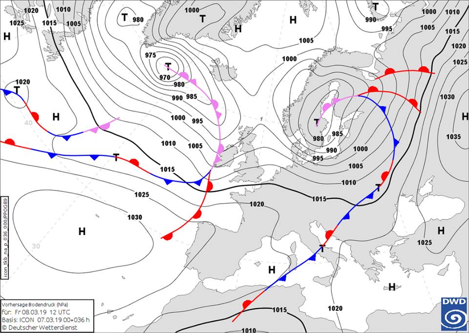 8 марта атмосферный фронт может нагнать тучи, в западных и северных областях Украины возможны дожди. На юге, в центральной части и на востоке будет сухая погода.