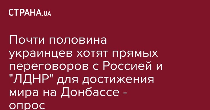 Большинство (40,9%) респондентов, опрошенных центром социальных исследований "София", ответили, что "путем прямых переговоров с руководством России и представителями самопровозглашеных "Донецкой и Луганской народных республик" нужно достичь мирного решения на Донбассе. Об этом свидетельствуют результаты опроса, передают Украинские новости.