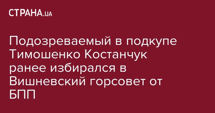 Подозреваемый в подкупе Тимошенко Костанчук ранее избирался в Вишневский горсовет от БПП