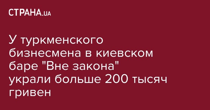 Как мы узнали из собственных источников в правоохранительных органах столицы, в полицию обратился туркменский бизнесмен, пожаловавшийся, что пока он наслаждался кальяном у него виртуозно выкрали из сумки все деньги - 7 000 долларов США и 20 000 гривен.