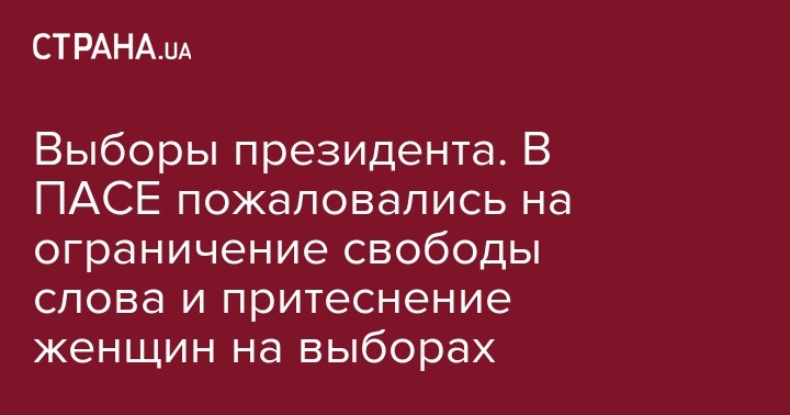 Выборы президента. В ПАСЕ пожаловались на ограничение свободы слова и притеснение женщин на выборах