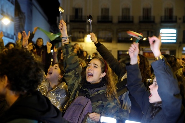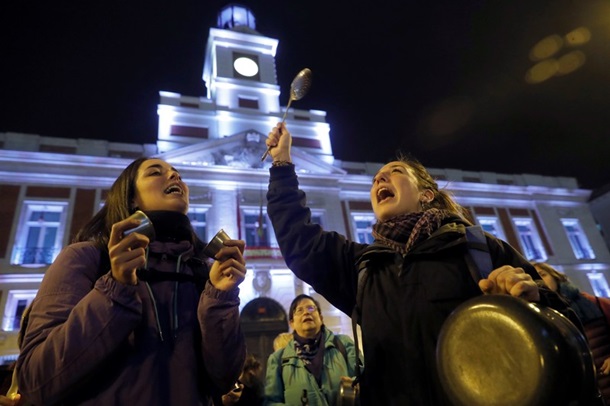 Так, в Испании сотни женщин вышли на центральную площадь Мадрида, стуча в кастрюли и сковородки, передает Reuters.