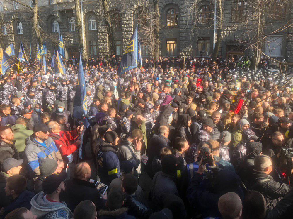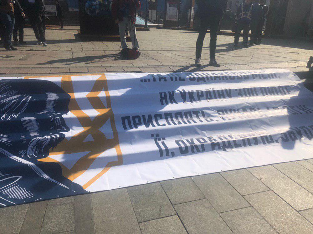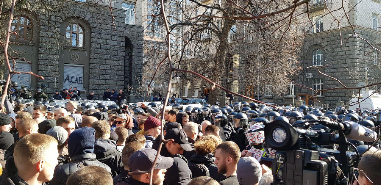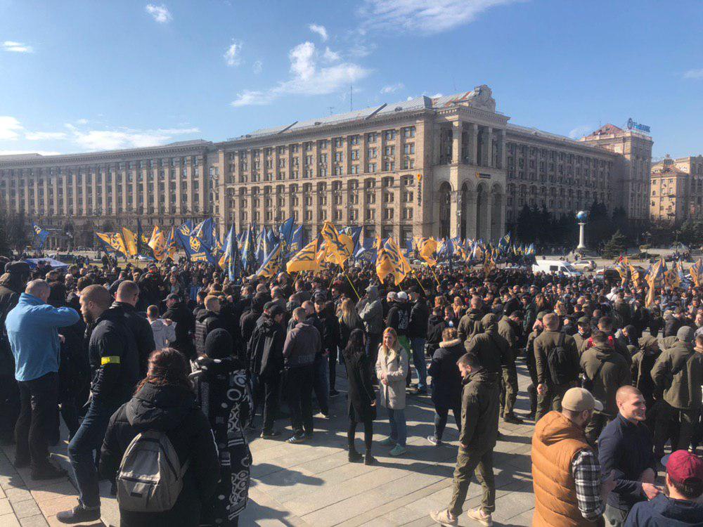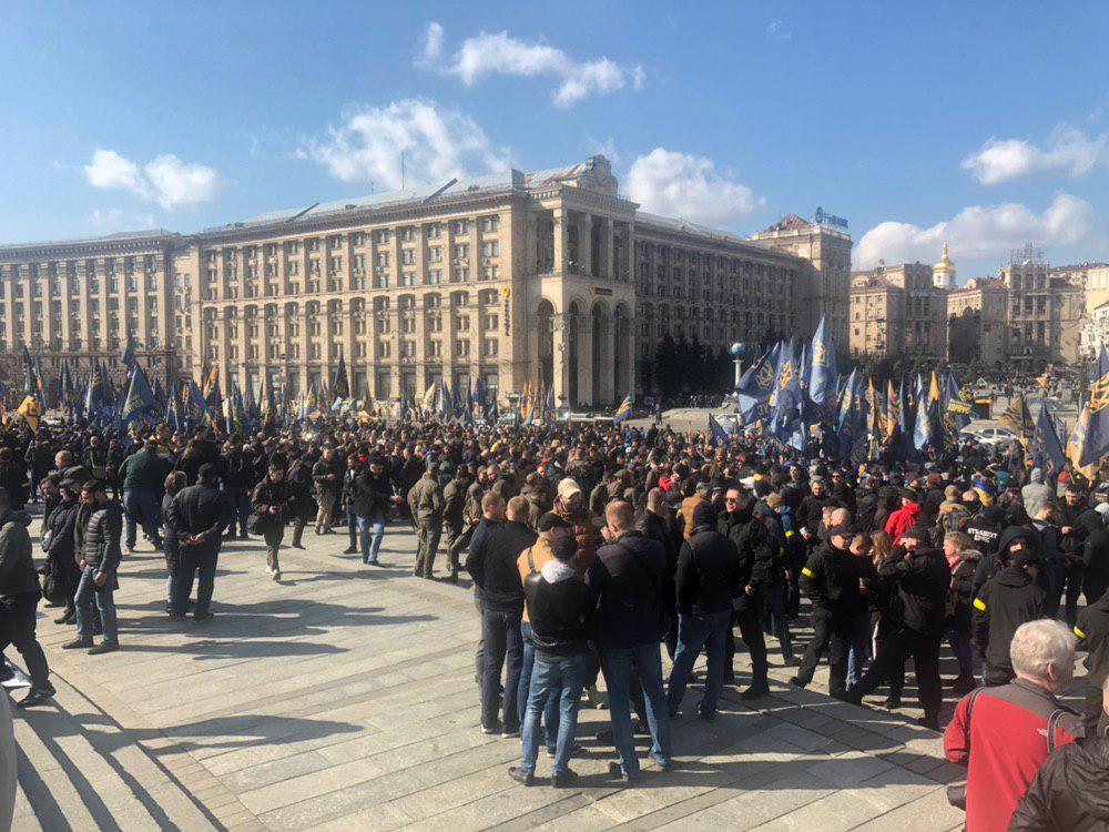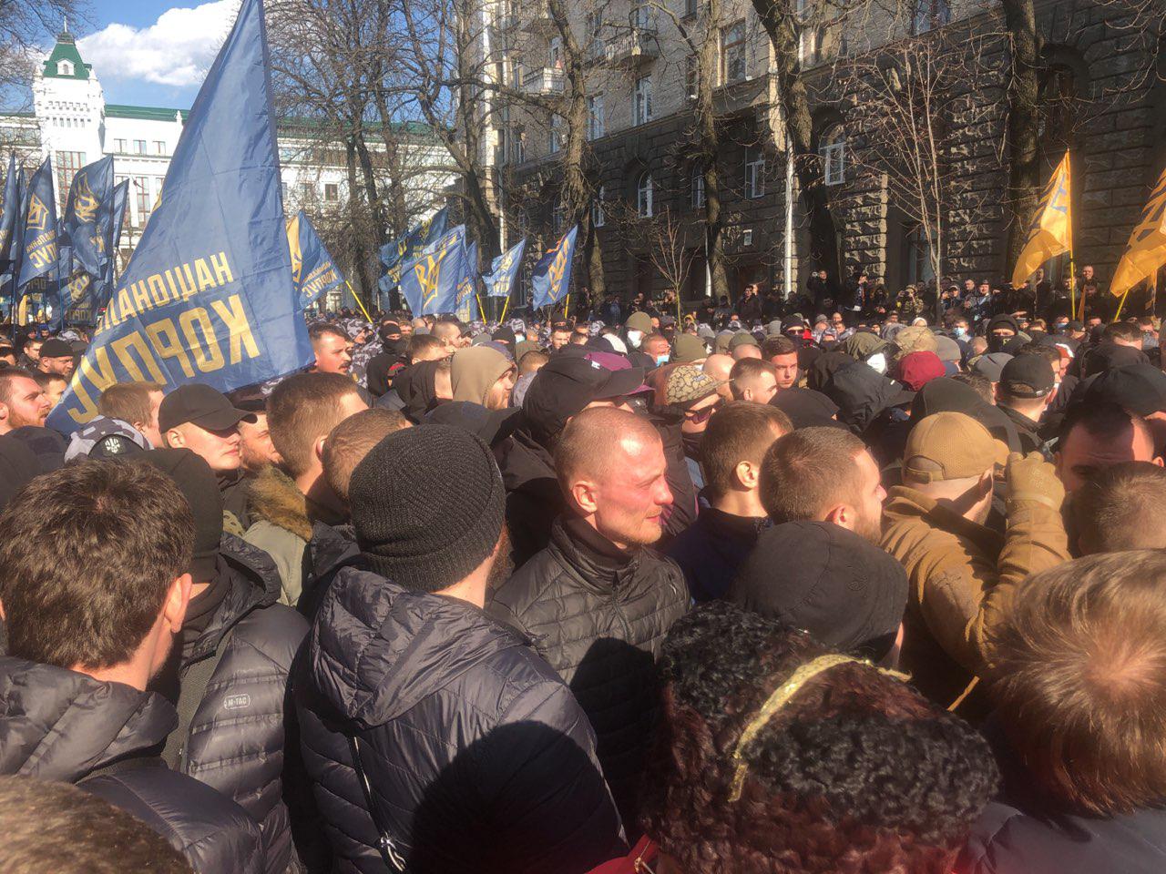 Вместе с ним на акцию вышли "Национальные дружины" - нечто вроде "боевого крыла" националистической партии Билецкого.