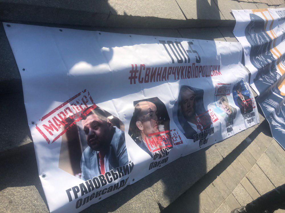 12:27 Плакаты митинга. На первом - ТОП-5 "свинарчуков Порошенко". То есть, людей, которые, по мнению авторов, служат прикрытием для коррупционных схем.