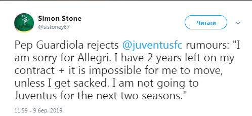 Однако наставник Манчестер Сити решительно опроверг все эти слухи. Слова тренера "горожан" привел в своем Twitter английский журналист Саймон Стоун.