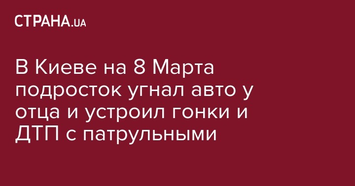 В Киеве на 8 марта 16-летний сын угнал авто у собственного отца и в погоне скрывался от полиции. Об этом сообщает Телеграм-канал "Киев Оперативный".