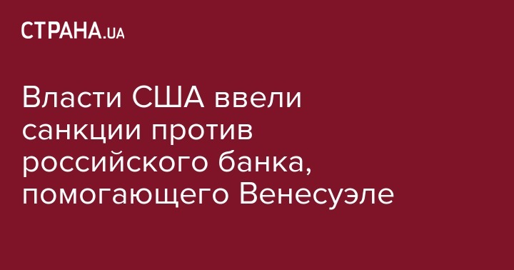 Власти США ввели санкции против российского банка, помогающего Венесуэле