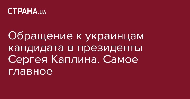 Обращение к украинцам кандидата в президенты Сергея Каплина. Самое главное