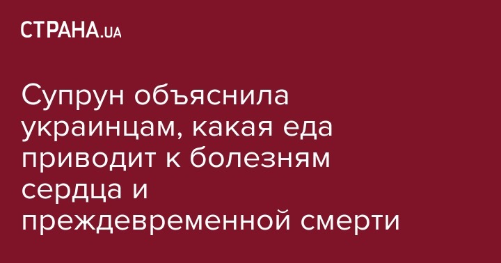 Супрун объяснила украинцам, какая еда приводит к болезням сердца и преждевременной смерти