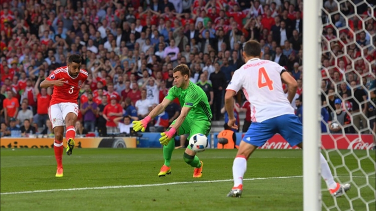 22.11 Россия обрезалась в центре поля, Аллен точным пасом по центру бросил в прорыв Аарона Рэмзи, и тот перебросил мяч через Акинфеева в стиле Месси.