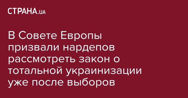 В Совете Европы призвали нардепов рассмотреть закон о тотальной украинизации уже после выборов