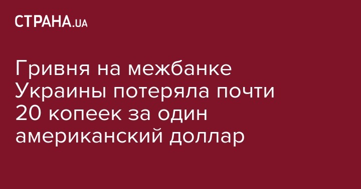Гривня на межбанке Украины потеряла почти 20 копеек за один американский доллар