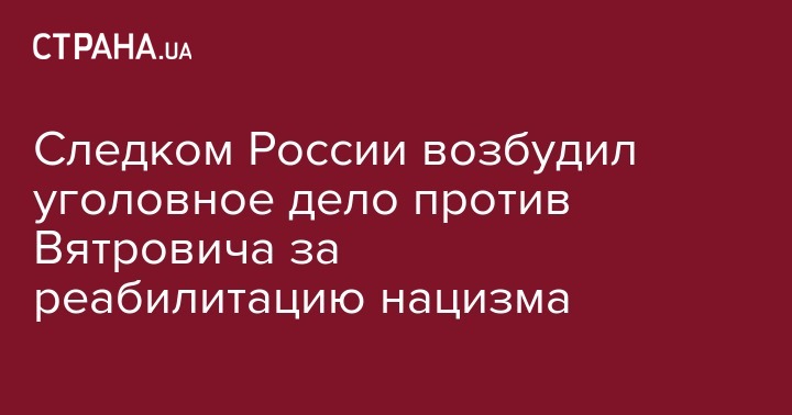 Уголовное дело по факту реабилитации нацизма возбуждено Следственным комитетом России против главы Украинского института национальной памяти (УИНП) Владимира Вятровича.