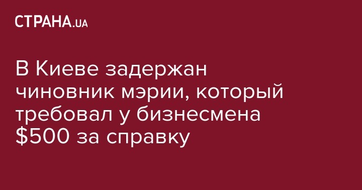 В Киеве задержан чиновник мэрии, который требовал у бизнесмена $500 за справку