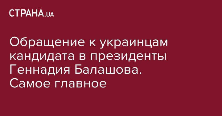 На телеканале UA: Перший состоялось выступление кандидата в президенты Геннадия Балашова.