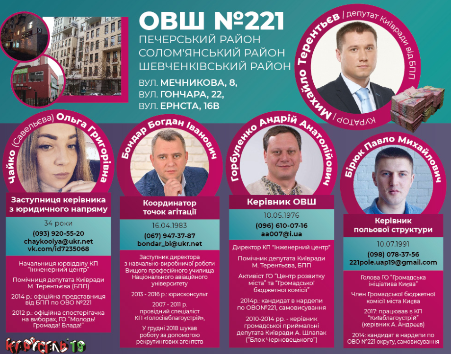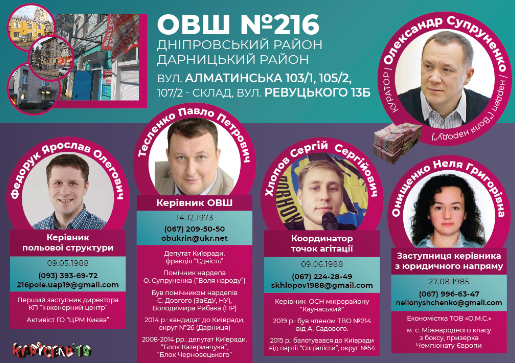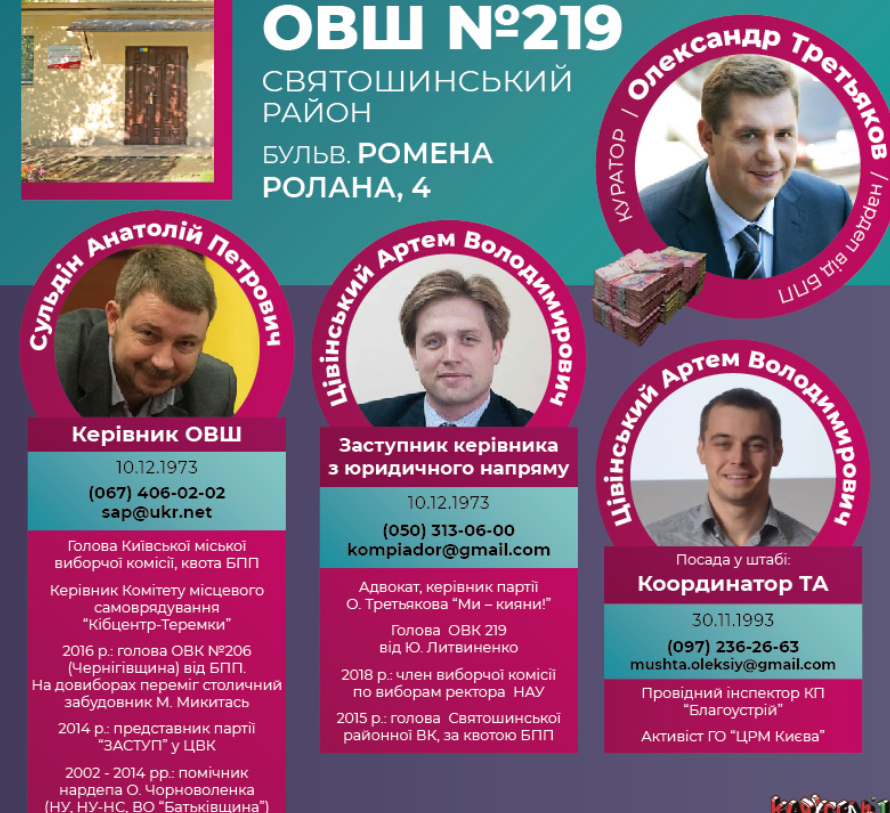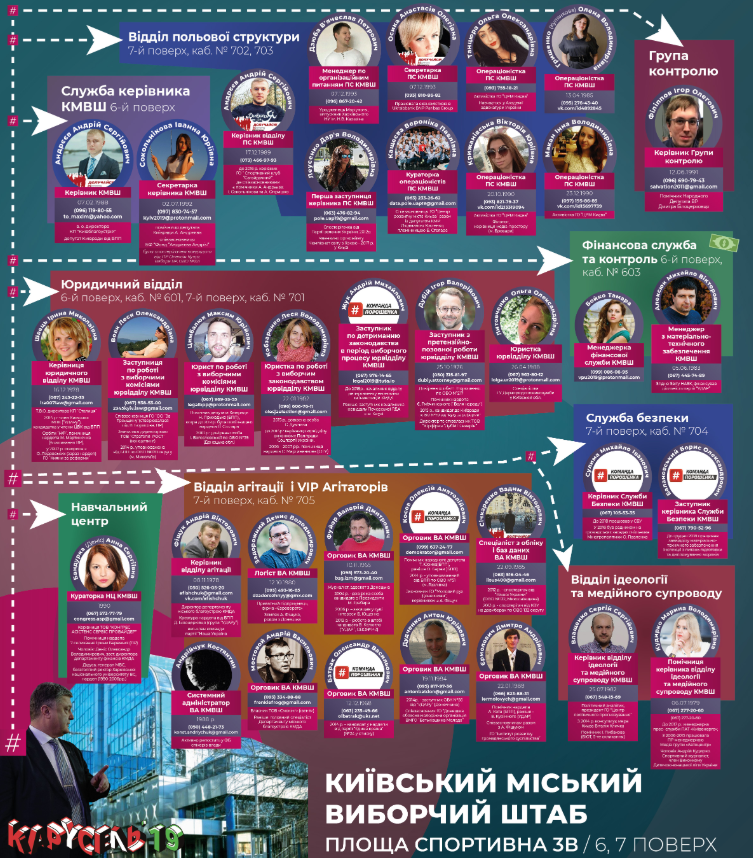 Их "досье" направляются к Киевский избирательный штаб (КИШ), который и контролирует как раздачу денег, так и окружные штабы.